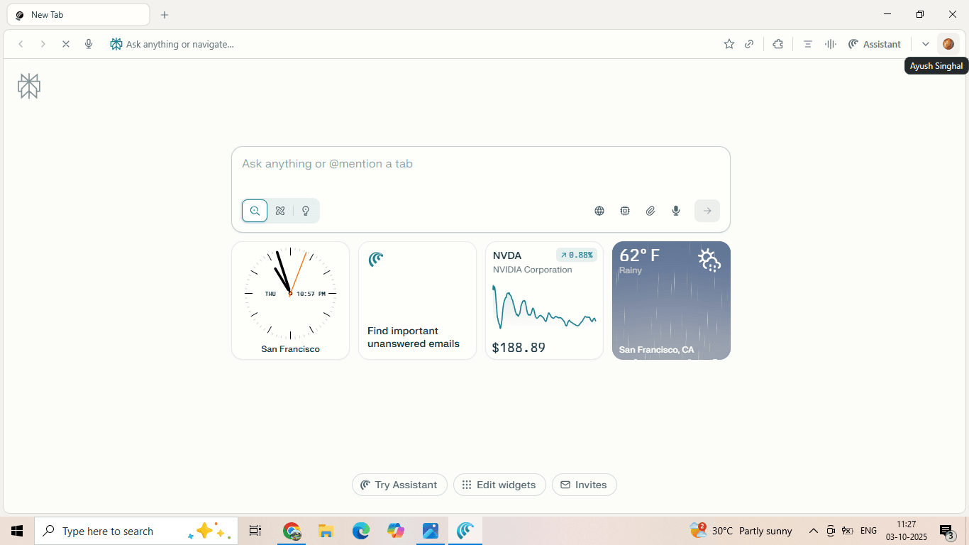 The browser launches, ready to act as your personal AI-powered assistant.