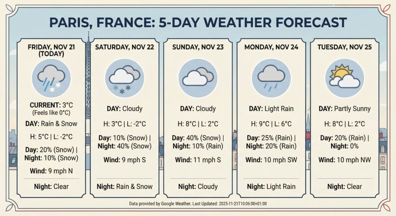 “Generate an infographic of the current 5-day weather forecast for Paris.”