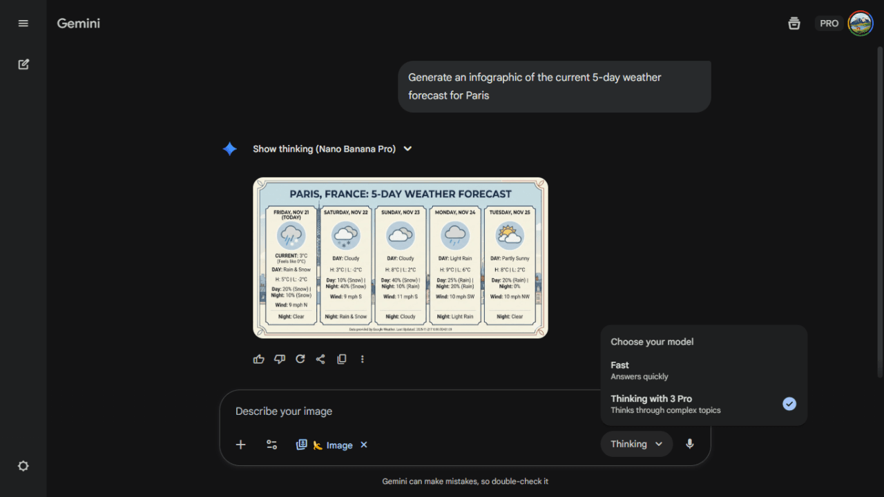 Nano Banana Pro can pull real, current data via Google Search and turn it into a visual instantly.