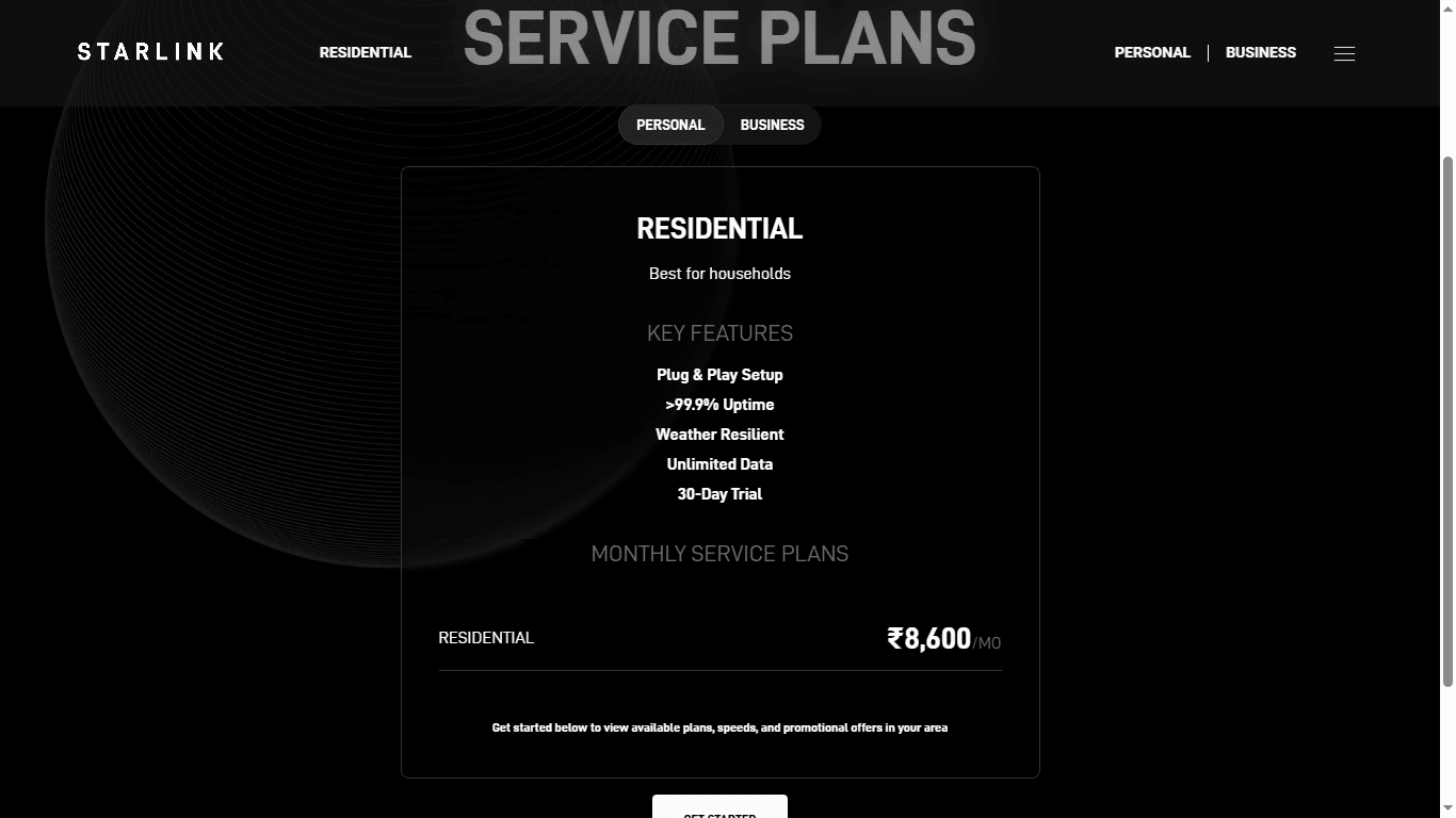 According to the Starlink India website, the company will begin with its Residential plan — the standard package meant for homes and personal use.